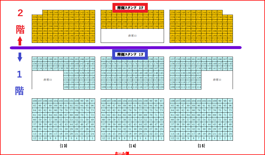 | 1階スタンド席 | 2階スタンド席 | 3階スタンド席 | |