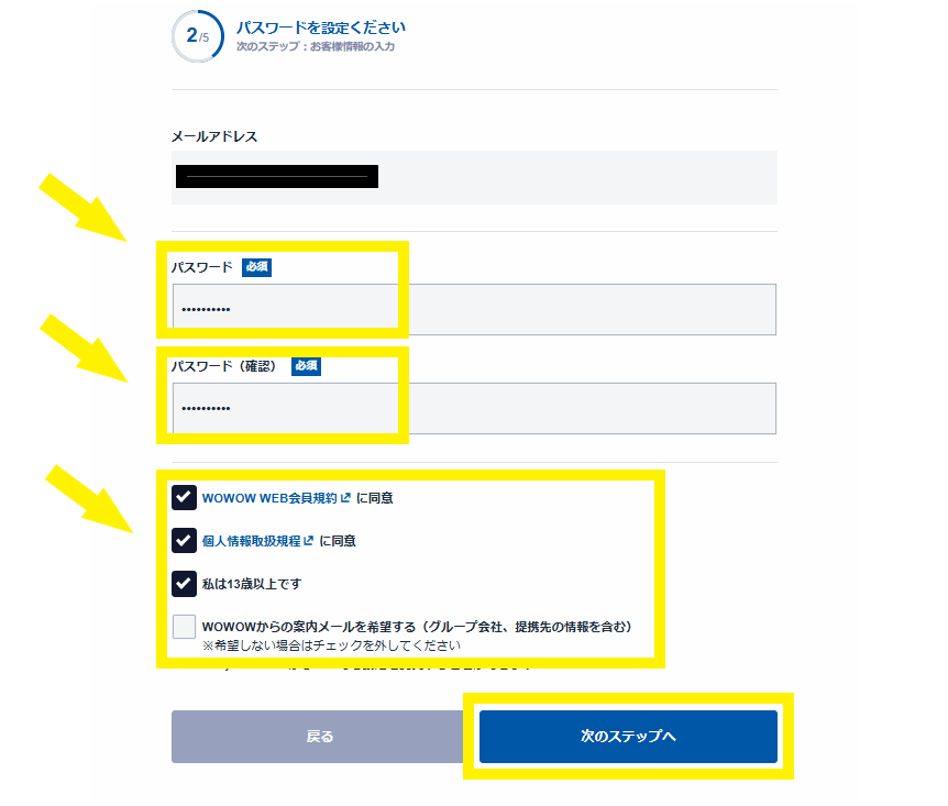 ※WOWOWからの案内メールは任意なので、チェックを外してもOKです。