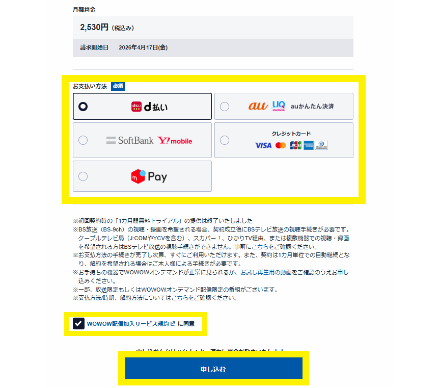 ◆WOWOWの加入手順を画像つきで解説